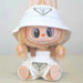 Designer White Bucket Hat And Overalls Labubu Outfit