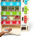 - Sort play food items, stock the wooden vending machine, then insert play coins and make a selection by pressing the corresponding button and watch items fall into the collection drawer