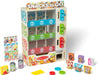 - 16-piece play set includes wooden vending machine, 3 double-sided wooden snack bars, 3 double-sided drink cans, 3 double-sided snack pouches, 3 play coins, bank card, double-sided customizable sign, reusable activity card